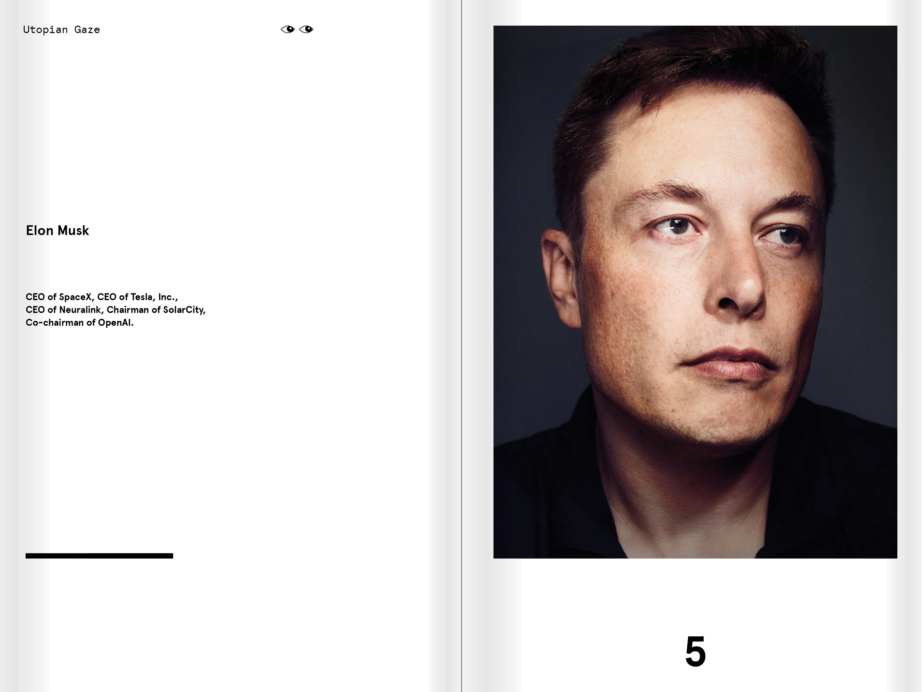 Utopian Gaze This long form book catalogs portraitures of Utopians— from Mark Zuckerberg to Thomas More. It is formated to be a monotonous chronological archive, each subject's eyes hitting at the exact same hangline. The book concludes by following this gaze, tracing an index of excerpts from each “visionary.” I chose not to exclude the Utopians whose visions fail darkly. Through scripting, I automated the design of the book to present each portrait in a non-hierarchical way. The book gives the same real estate and visual treatment to each figure. The intent was to create a horizontal landscape for the audience to draw their own conclusions about man’s quest for an ideal society throughout time.